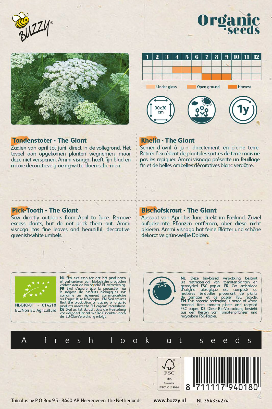 April bis Juni ins Freie. Aufgekeimte Pflanzen entfernen, nicht pikieren. Ammi vistnaga hat feine Blätter und schöne dekorative grün bis weiße Dolden.